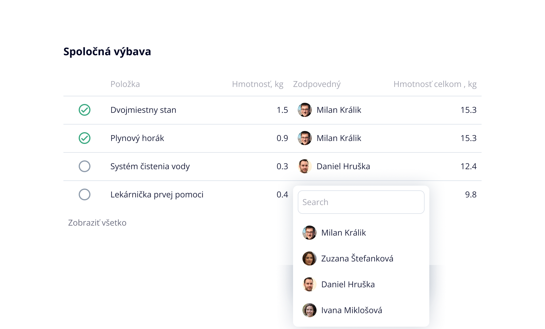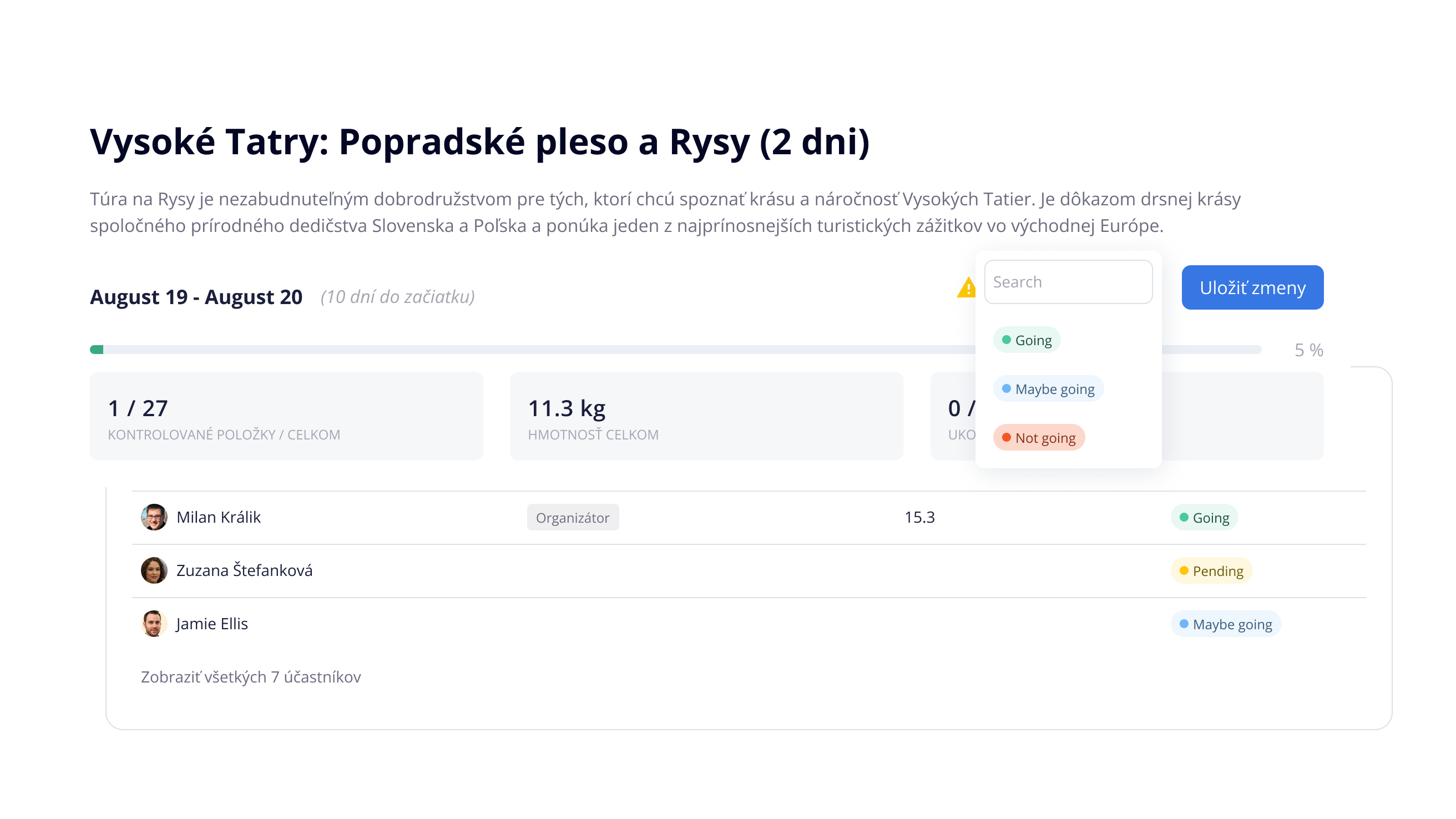 Pripravte svoj tím pomocou kontrolných zoznamov pre spoločné vybavenie a osobné veci, koordinujte úlohy a sledujte pokrok v reálnom čase